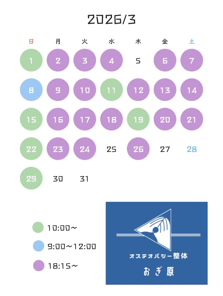 3月の営業日 Uncategorized Twitter Facebook はてブ Pocket LINE コピー 2026.03.01 3月の営業日カレンダーになります. 公式LINEでは月末に来月分の営業日カレンダーを送らせて頂いてますので、ぜひご利用ください!完全予約制になりますので、ご予約のうえご来院をお待ちしております☺️